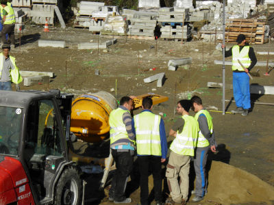 Pose de la première pierre de la plateforme TP de l'UFA Michelet sur le site du GRETA Nantes BTP, en présence des élus locaux.
