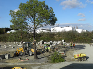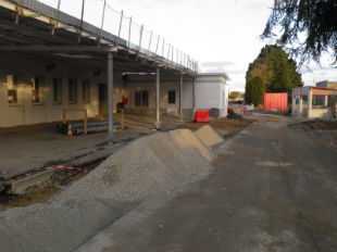 Un terrain bien nivelé, un chemin sécurisé le long de la zone gros oeuvre qui passe sur le coté de la MOB pour accéder à la zone des CAP Constructeur de routes et des jeunes du CFA.